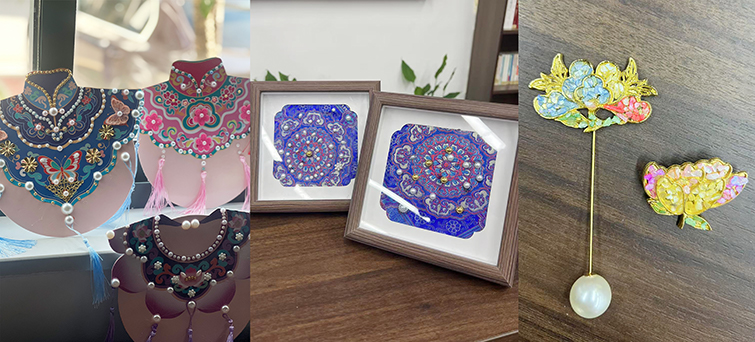 为弘扬中华优秀非遗文化,在班级老师的指导下,孩子们开启非遗传承(螺钿胸针、宋锦珍珠画、云肩珍珠画)的创作之旅。