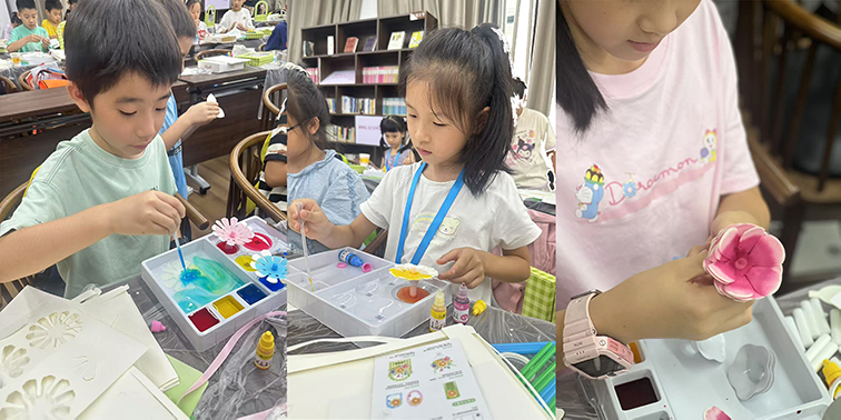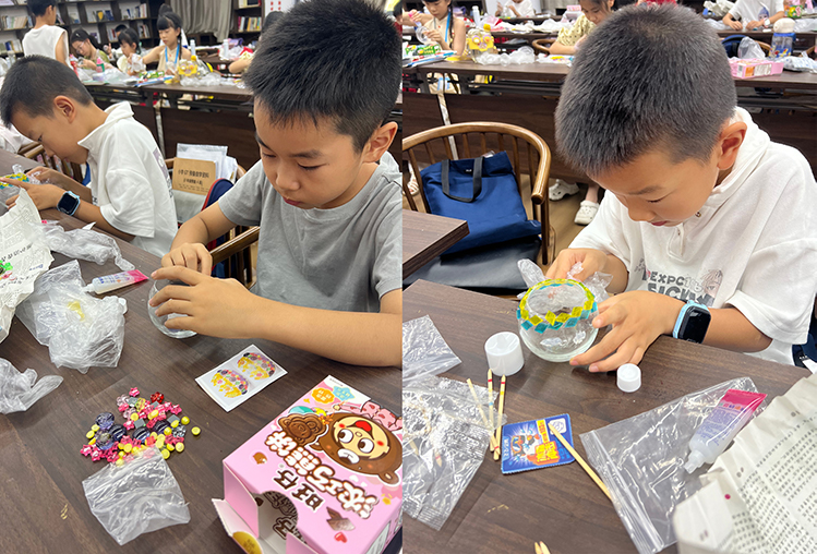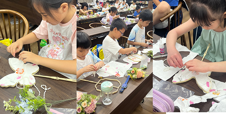 手工课堂成为一片片充满惊喜的“造梦工场”,指尖翻飞间,孩子们带着指尖的材料、心中的图景和眼前的目标,编织着属于他们的夏日童话。