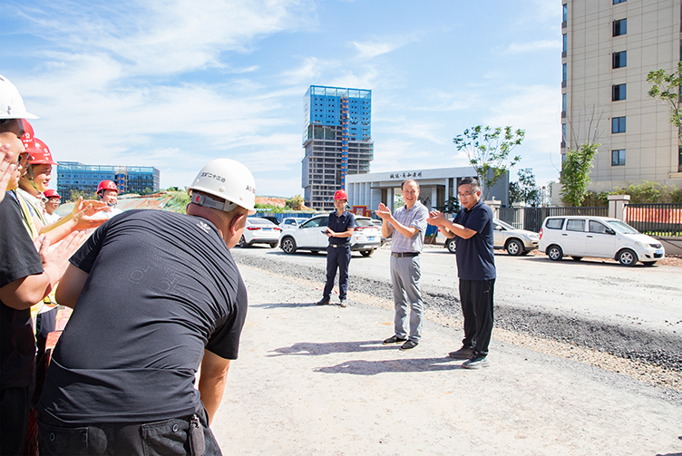 并反复叮嘱道:“高温天气下,大家既要赶进度、保质量,更要守安全、护健康,确保平安施工”,勉励大家再接再厉、克难攻坚,聚焦重点、精准发力,以更有力举措打赢打好项目建设攻坚战。
