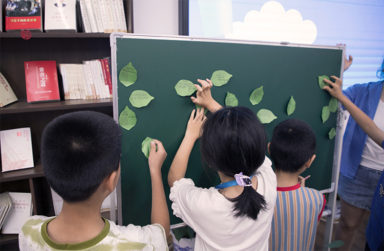 在课程结尾,小朋友们在树叶上写下自己对反对霸凌的承诺,纷纷表示要从自己做起,拒绝校园欺凌。