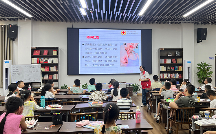 知禁毒安全成长,学急救沐光前行,岳阳市红十字会走进暑托班,将禁毒教育宣传与急救知识传授有机结合,“故事+互动” 的模式让生命教育的种子悄然扎根,“禁毒+急救”双护航,为孩子们绘出一幅 “识险、避险、救险” 的安全成长蓝图。
