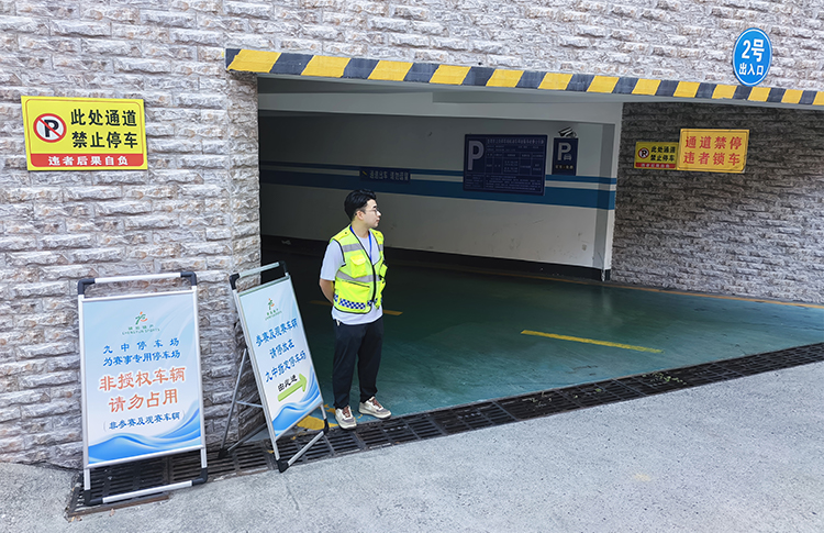 交通疏导组在高温中坚守路口,安排专人驻点值守,紧密配合属地交警部门,对进出场馆主要道路、地下停车场出入口、周边学校通道口等关键节点,开展车辆实时指引、通行协调及路线规划引导,未出现一场因赛事导致的交通拥堵;
