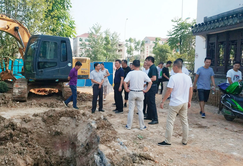 8月22日下午,南湖新区工委书记李运帷一行到园林绿化公司位于赶山路污水管网建设项目现场视察工作。园林绿化公司总经理冯群华现场陪同。