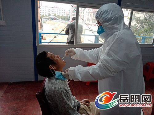 “啊——啊”,在工地工房二楼的房间内,卢友平正配合着全副武装的社区医护人员做核酸检测取样。门外,工友们正排队等候检测。当天上午10点多钟,记者进入位于朝阳小学的南湖周边地下智慧停车场项目建设工地时,社区医护人员正忙着给工地上的工友进行核酸取样。