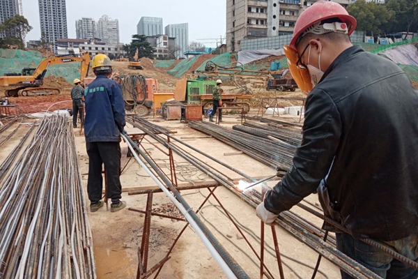 “咚——咚”、“哒——哒”……2月25日清晨,伴随着早春和煦的阳光,徐徐微风,东风广场改扩建项目工地传来的机器轰鸣,打破了这里近一个月的沉寂。在深约10多米的施工区,头顶安全帽、戴着口罩的工人们正忙得热火朝天。工区靠近南半部,钢筋骨架已架起约二层高,工人们在钢筋丛林正忙着捆扎钢筋;约2层楼高钢筋架上方,塔吊来回穿梭,正不停搬运钢材;地上,伴随着刺耳的“哧——哧”声,切割机前方早已火花四溅,一根根钢材整齐划一,应声而断;不远处,十多名电焊工人,错落有致地站成两行,手到之处,焊花飞溅,弧光耀眼;工地北面,运输车辆往来穿梭,机器轰鸣声此起彼伏,跟随着“咣当--咣当”巨响,几台大型挖掘机不时冒出黑烟。
