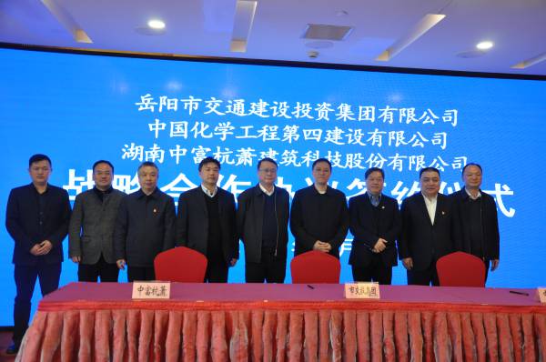 今天,岳阳市交通建设投资集团有限公司、中国化学工程第四建设有限公司、湖南中富杭萧建筑科技股份有限公司签订战略合作协议,就资源合作、工程设计施工、装配式建筑等方面加强合作。三方将对装配式建筑产业链方面的股权投资、产业基金等发展开展全方位合作,助力岳阳装配式建筑及建筑新材料产业链发展全面提速。岳阳市政协副主席秧励,经开区党工委副书记、管委会主任谢春生出席。