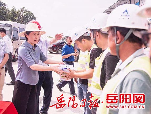 在城陵矶高速和G353岳阳东站至三荷机场快速通道建设现场,李爱武为项目建设现场员工送来清凉药物、消暑凉茶等,向高温时节奋战在一线的工程建设者致以节日的祝福和慰问。李爱武说——城陵矶高速和G353快速通道的建设,对于完善我市立体交通网络、进一步改善人民群众出行条件等具有重要意义。希望施工单位继续发扬不怕吃苦、连续作战的优良作风,紧盯时间节点、科学组织施工,在确保工程质量和安全的前提下加快推进,确保项目如期建成通车。