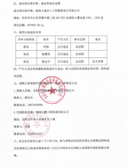 岳阳市南湖景区周边地下停车场项目勘察服务采购项目 竞争性谈判成交结果公告
